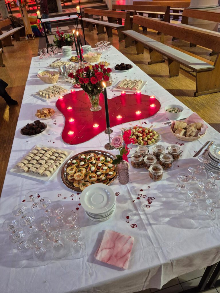 Am Ende des Gottesdienstes besteht die Möglichkeit zu einem persönlichen Segen für alle Liebenden. Egal ob einzeln, als Freunde, als Familie, als Paar. Denn Liebe hat viele Gesichter.